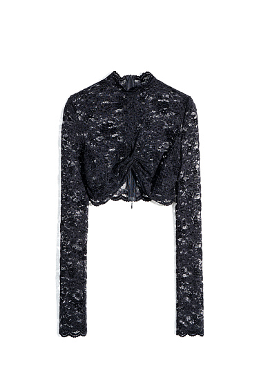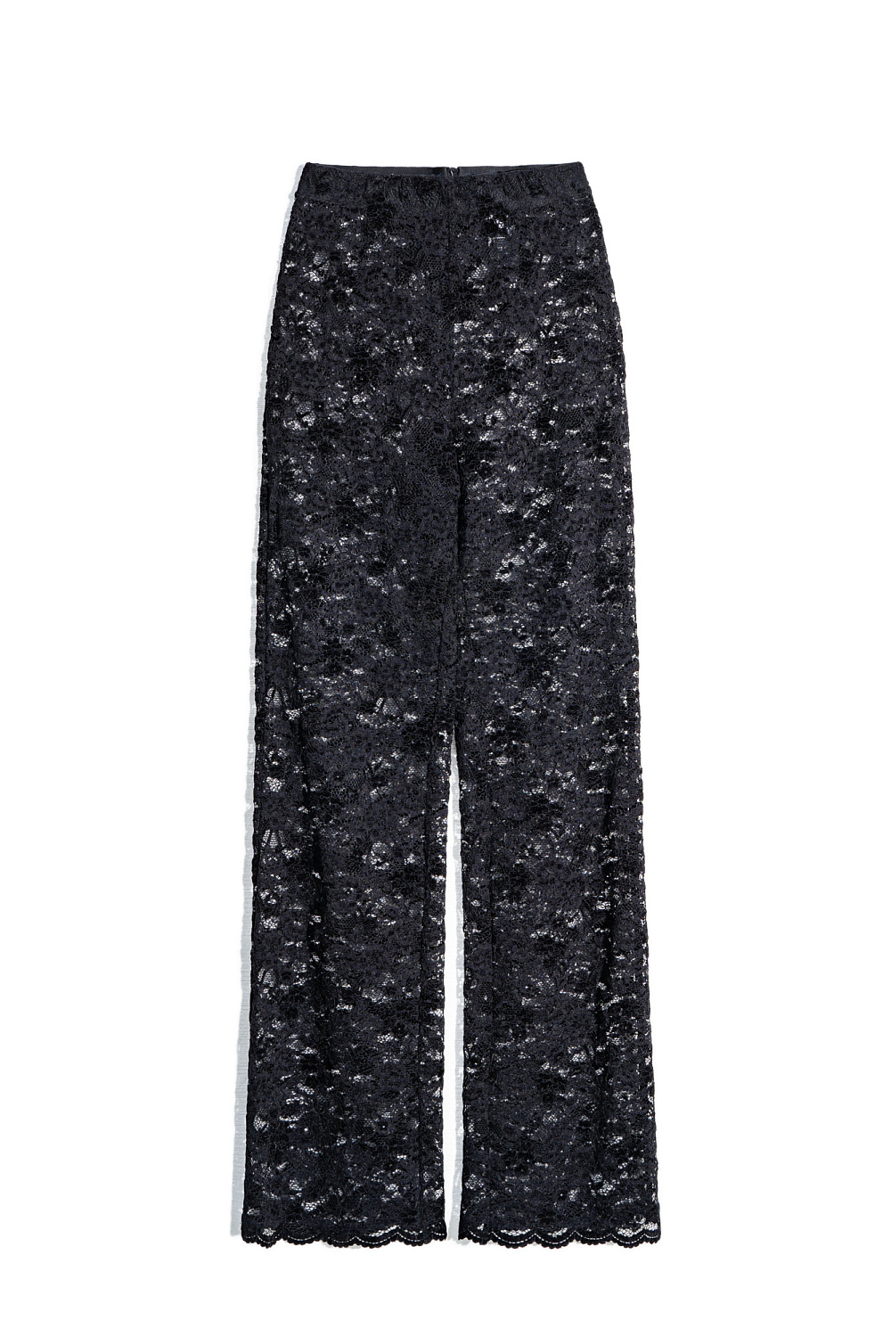 Lace trousers with a straight silhouette. Model with elastic waistband. The product is unlined.