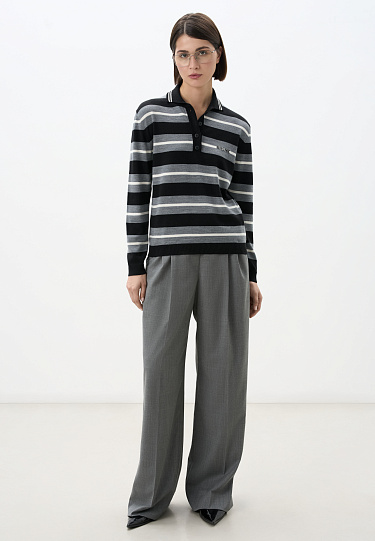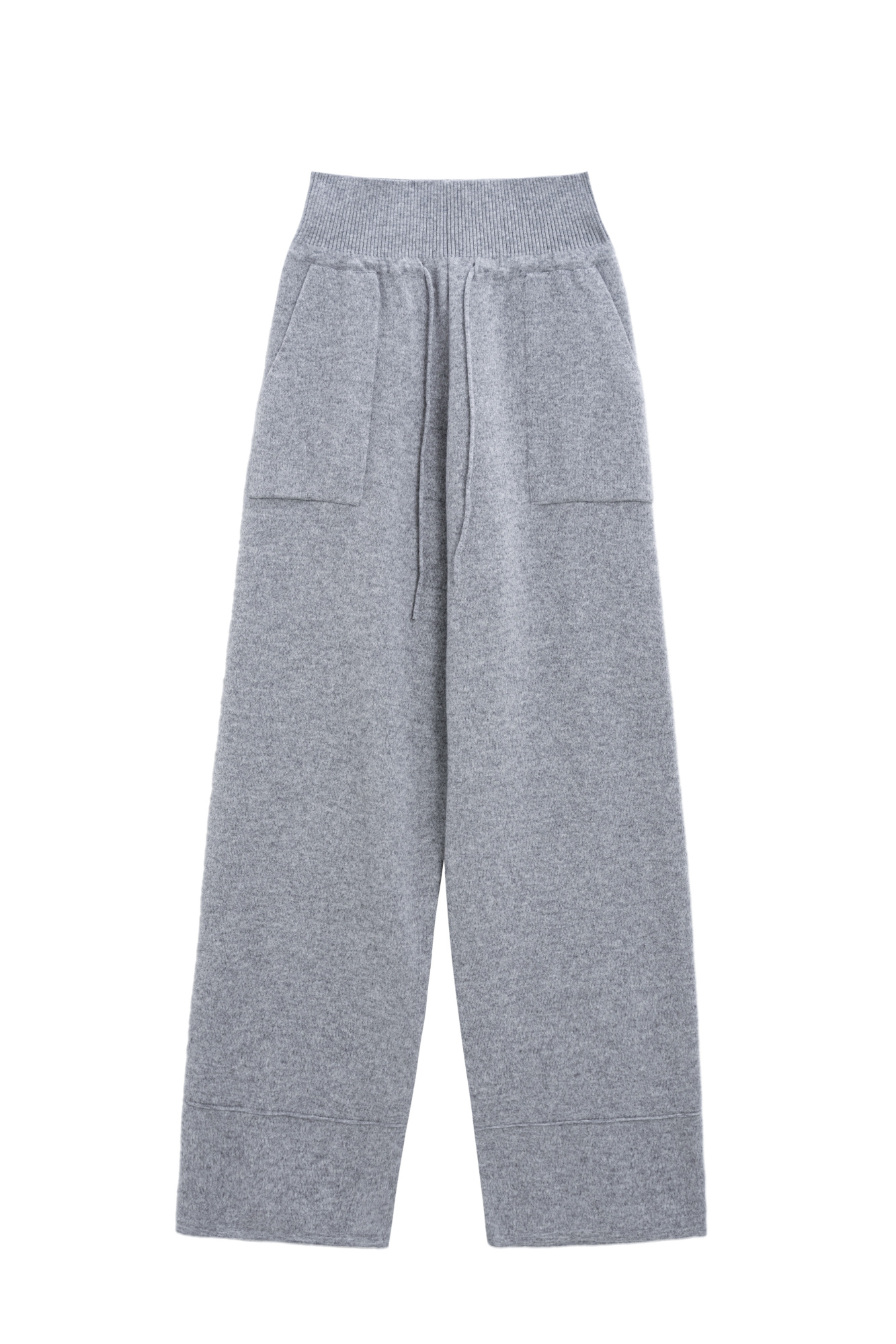 Knitted trousers made of cashmere, wool and viscose. A relaxed fit with a mid-rise fit, a wide ribbed elastic waistband and large patch pockets.