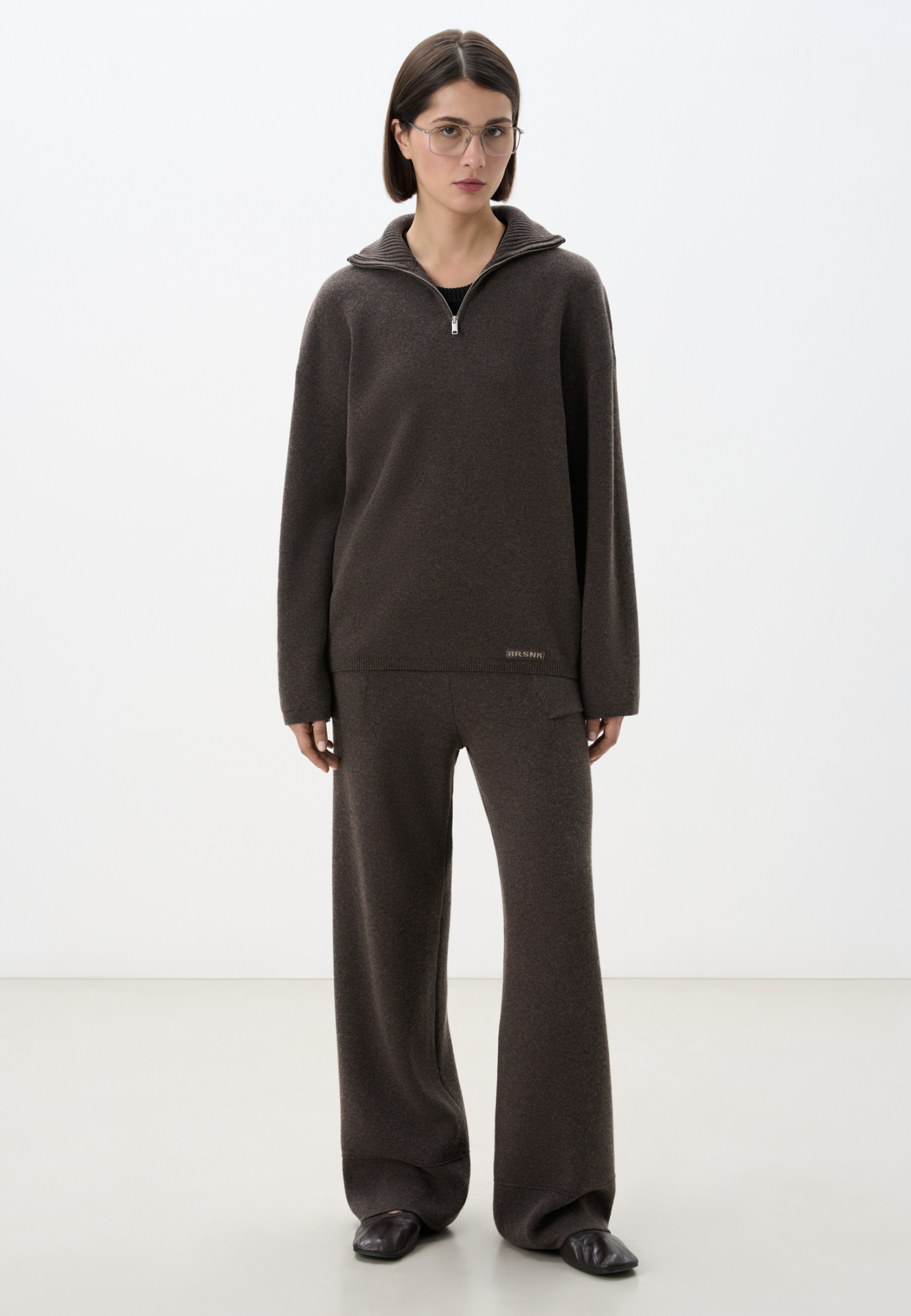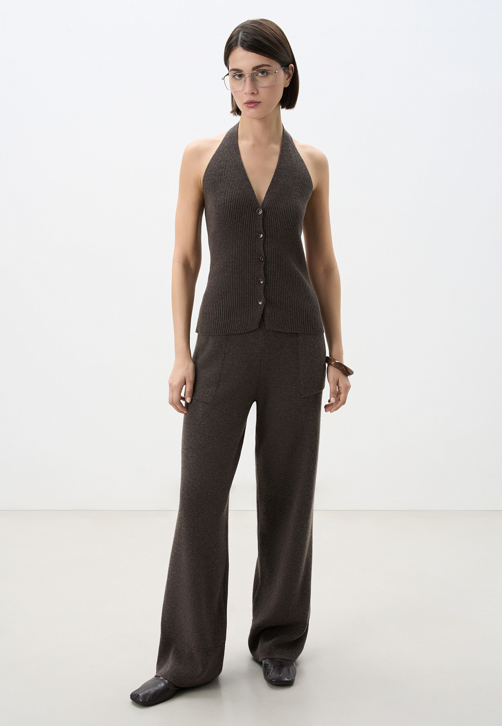 Knitted trousers made of cashmere, wool and viscose. A relaxed fit with a mid-rise fit, a wide ribbed elastic waistband and large patch pockets.