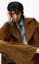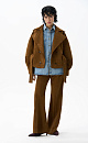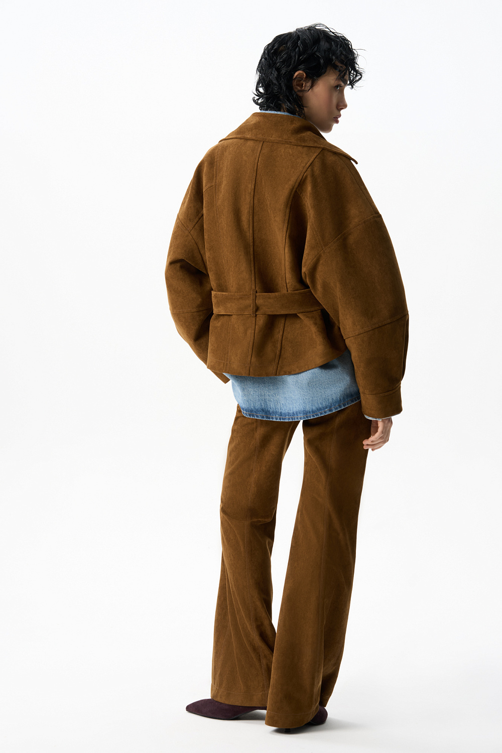 Trousers made of fabric with an imitation of the appearance and properties of natural suede. Straight fit model with belt loops, side pockets, back pockets and creases. Button and zip fastening. Finished with tone-on-tone stitching.