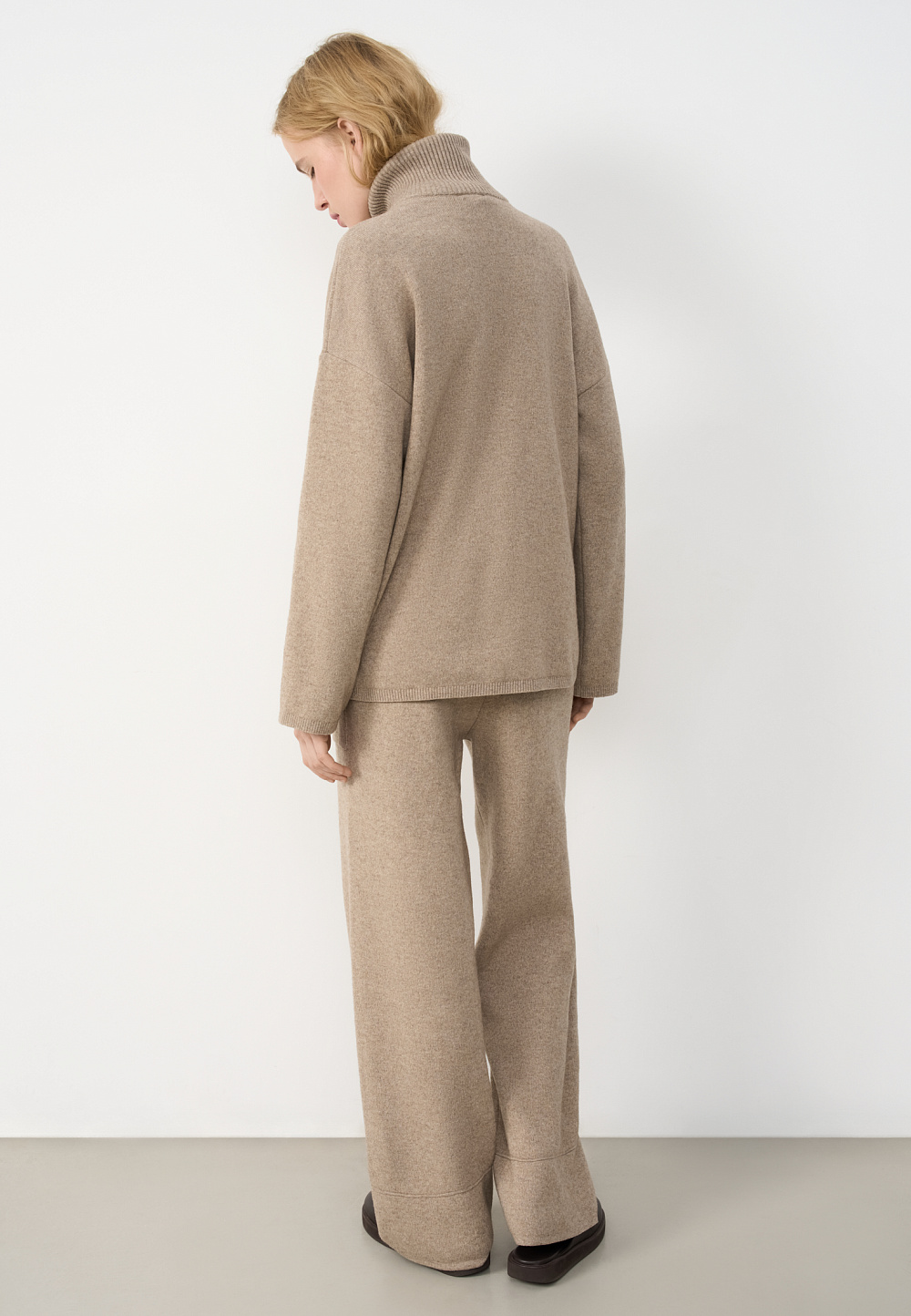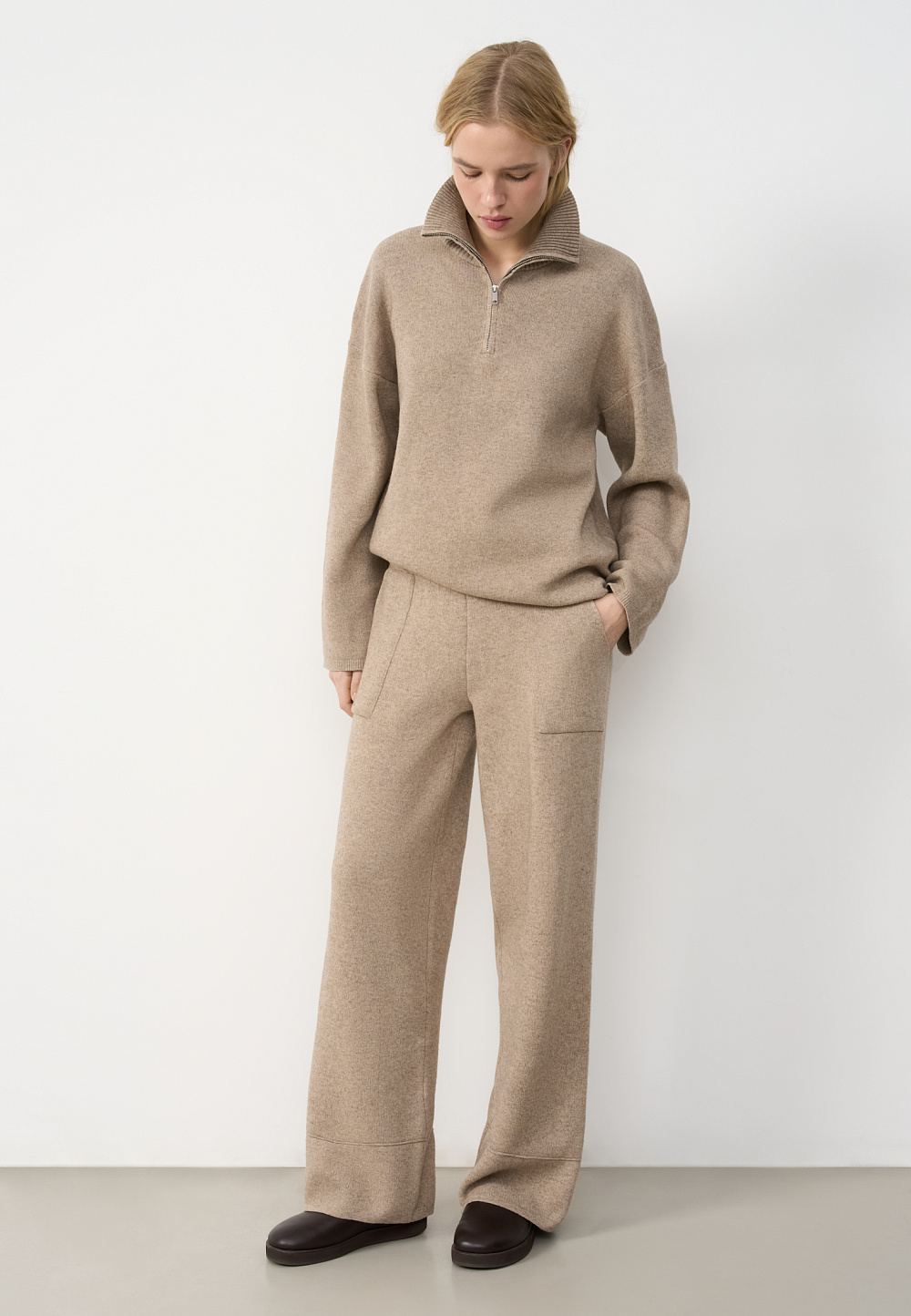 Knitted trousers made of cashmere, wool and viscose. A relaxed fit with a mid-rise fit, a wide ribbed elastic waistband and large patch pockets.
