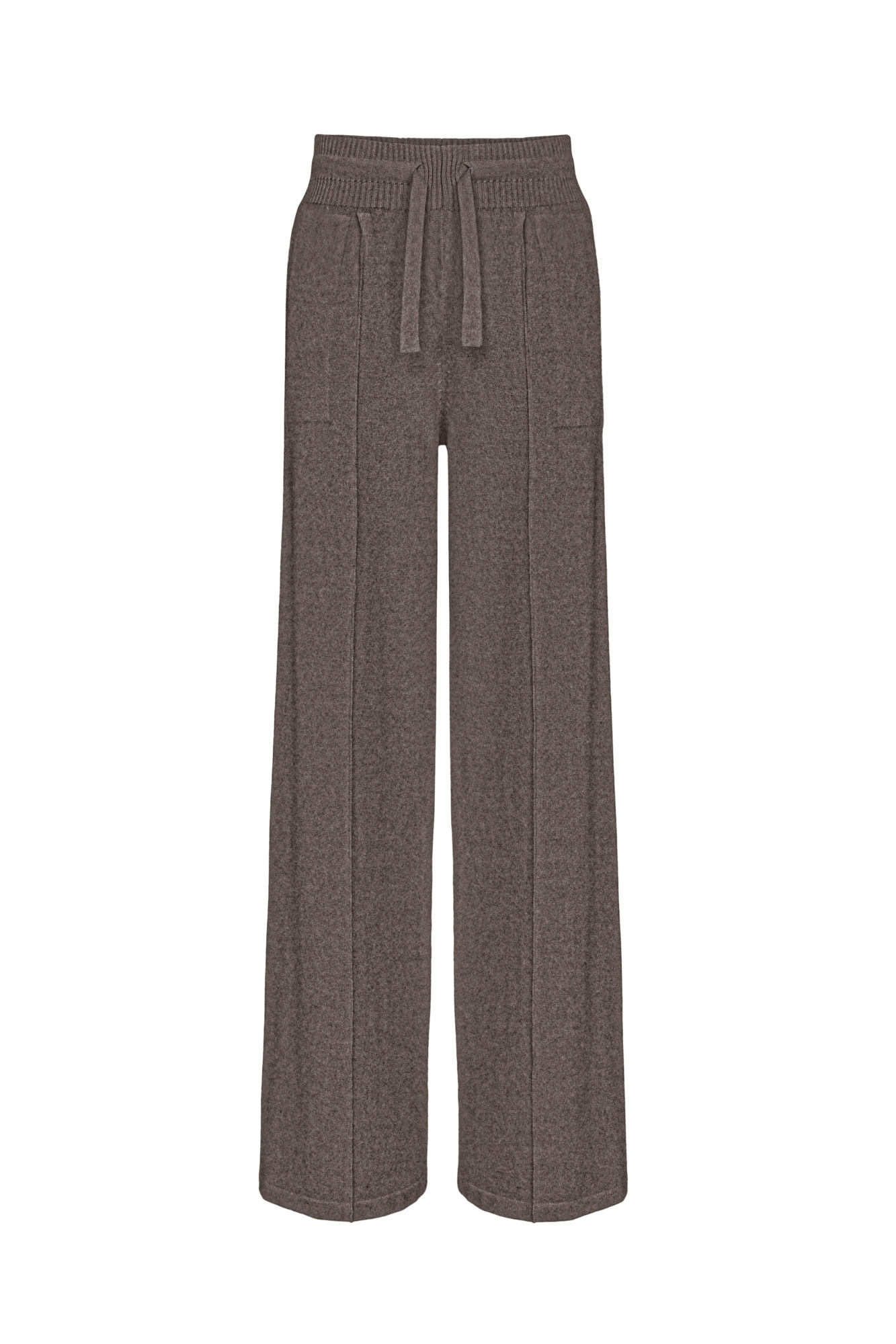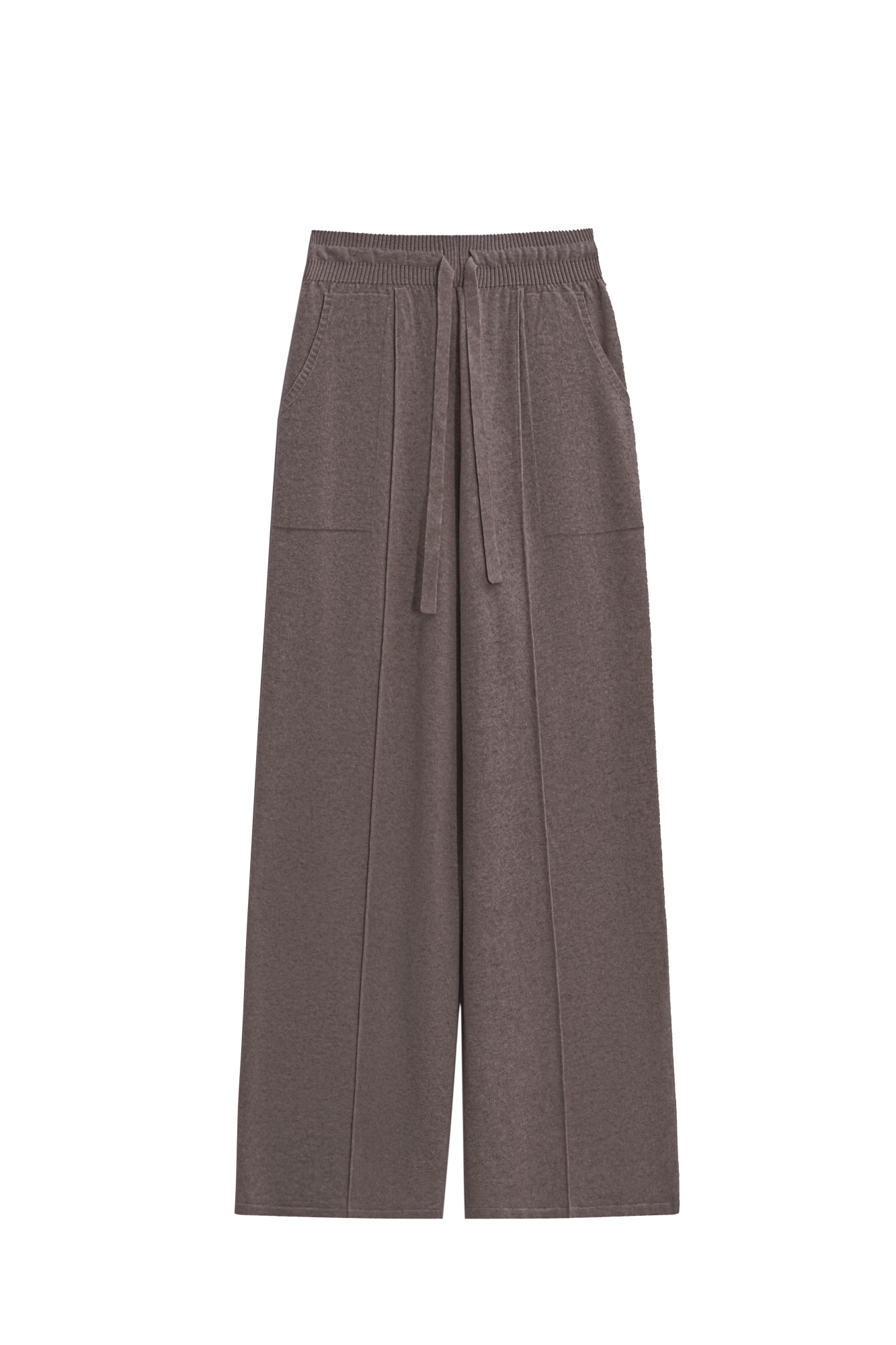 Knitted wool blend trousers. Relaxed silhouette with a mid rise, side pockets and creases. Elastic waistband with ribbed drawstring.