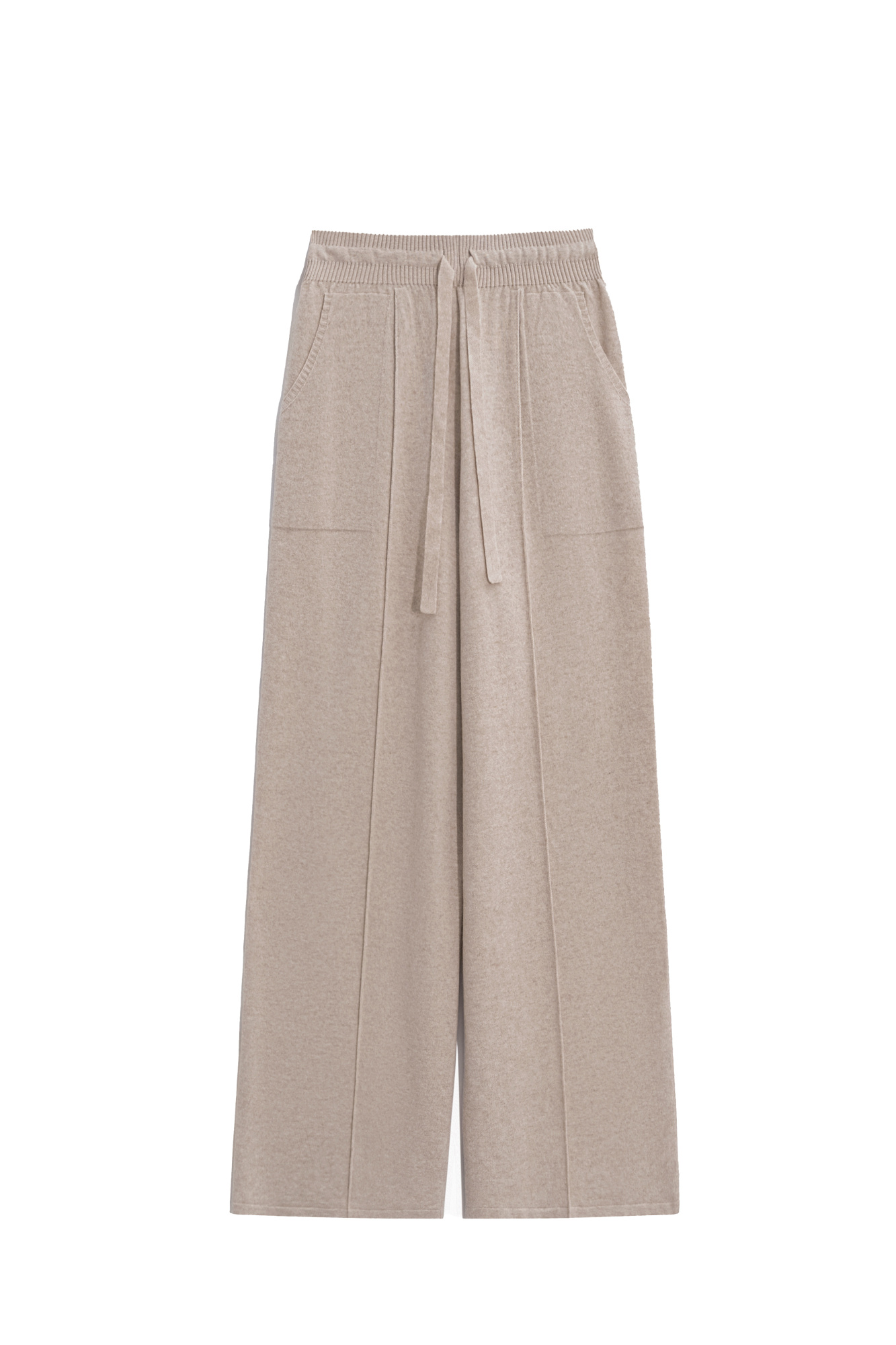 Knit wool blend trousers. Relaxed mid rise silhouette, side pockets and creases. Elastic waistband with drawstring.