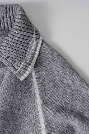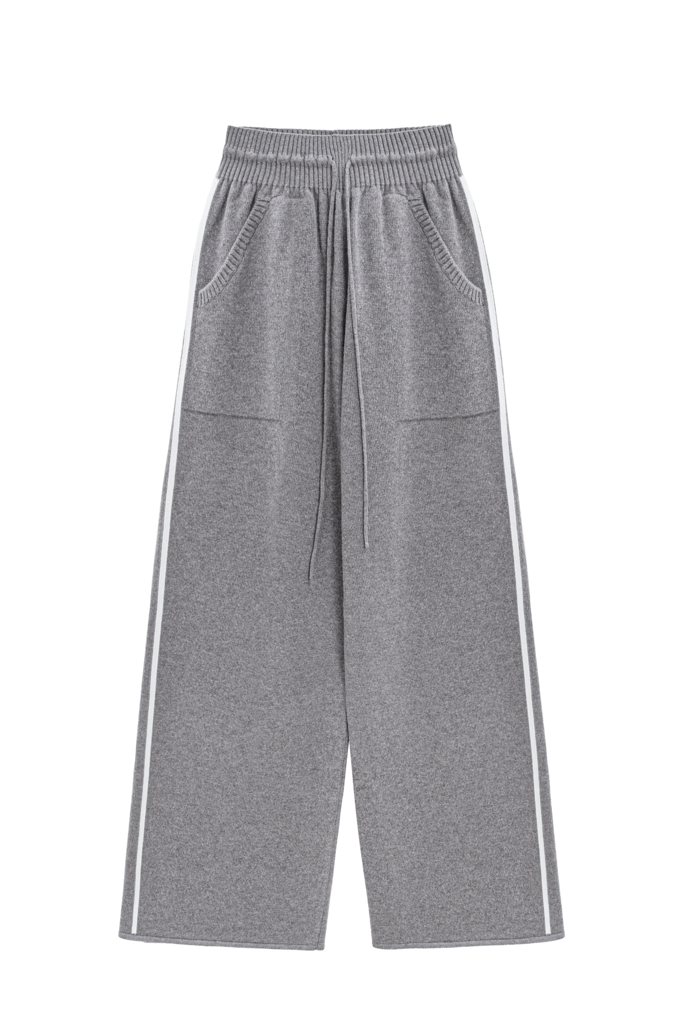 Knit wool-blend pants. Mid-rise relaxed silhouette with side pockets, elastic waistband and stripes. You can complete the look with a matching jumper.