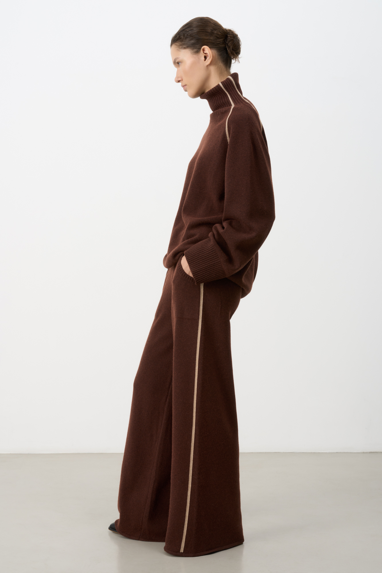 Knit wool-blend pants. Mid-rise relaxed silhouette with side pockets, elastic waistband and stripes. You can complete the look with a matching jumper.