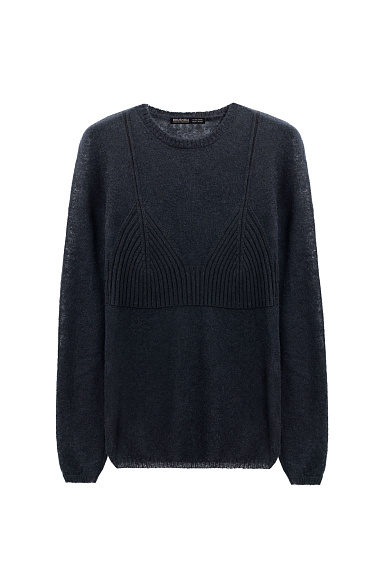 Knitted trousers with a merino wool base. Loose silhouette model with arrows, side pockets and elastic waistband. You can complement the look with a complete vest and bomber jacket.