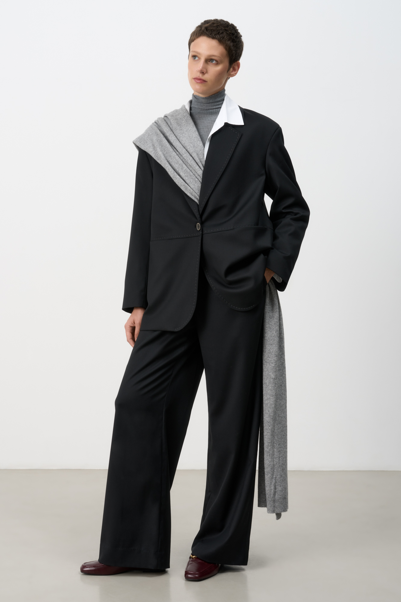 Wide-leg trousers in wool blend. Featuring an elasticated waistband with a drawstring, belt loops and side pockets with contrasting stitching. You can complement the look with a jacket in the same style.