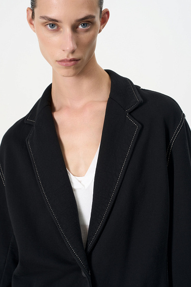 Wide-leg pants made from 100% cotton with an elastic waistband, side pockets, and contrasting stitching. You can complete the look with a jacket in the same style.