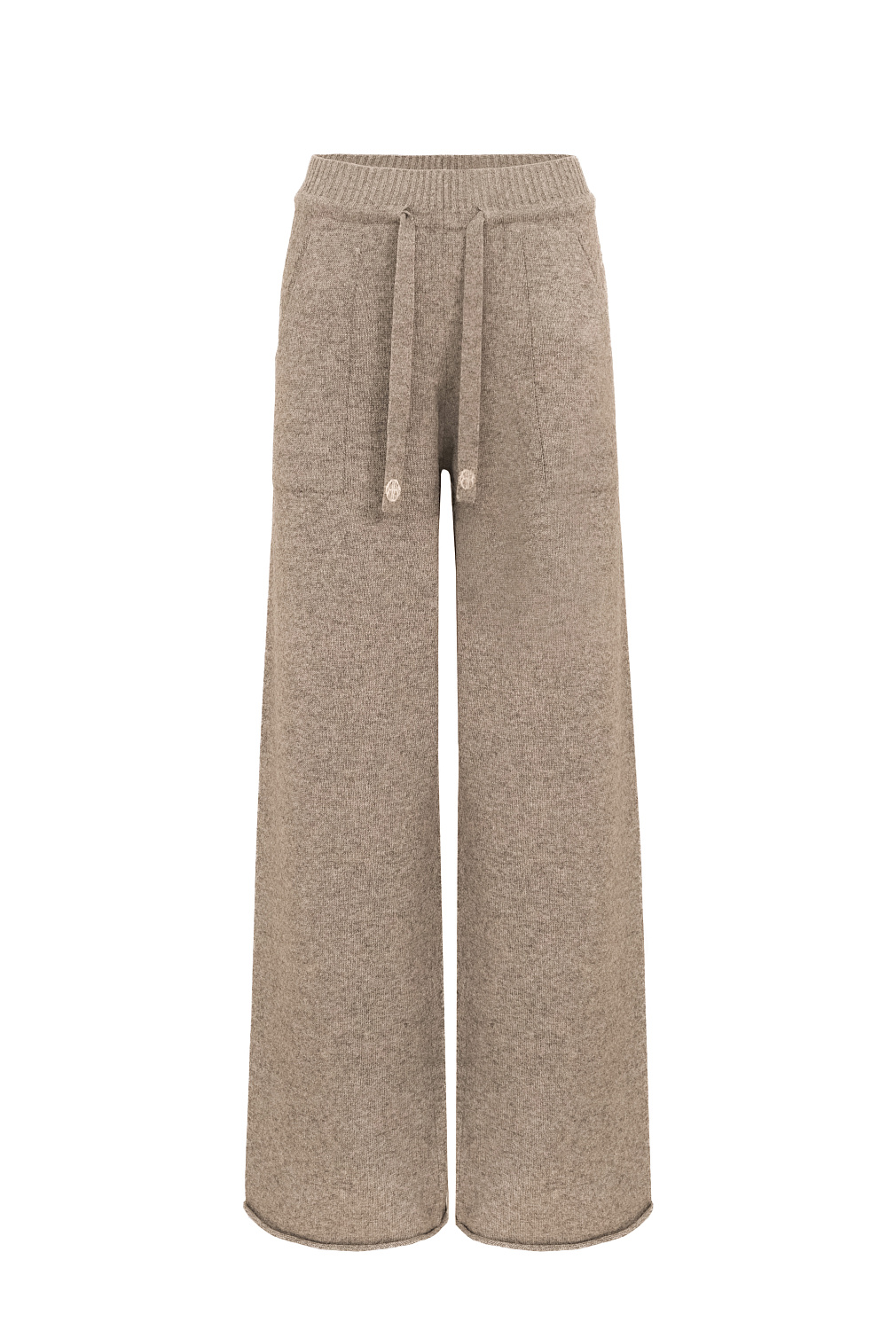 Knitted cashmere and wool trousers. The model has a straight silhouette with patch pockets and an elastic ribbed waistband with a drawstring. You can complement the look with a bomber jacket.