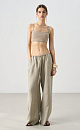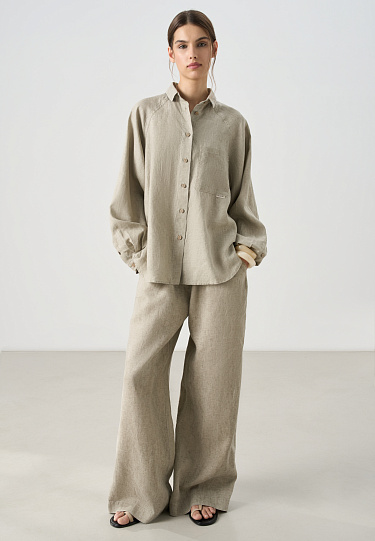 Trousers made of 100% linen. Straight fit model with wide legs and two side pockets. The product is made with a belt with a drawstring.