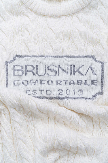 Straight knit trousers with voluminous braids made of soft wool. Wide elastic waistband with drawstring, front and back pockets and hem cuffs. You can complement the look with a jumper in the same style.