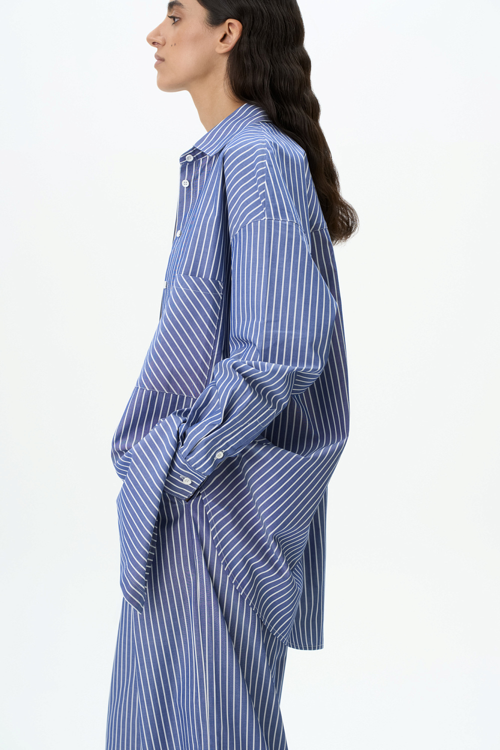 Striped cotton set featuring a classic shirt with a patch pocket at the chest and loose-fit trousers with an elastic waistband and logo.