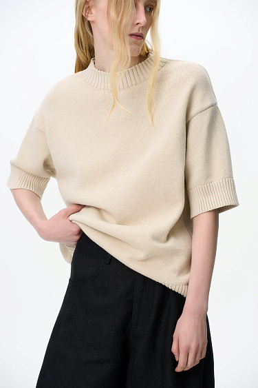 Trousers made of 100% linen. Straight fit model with wide legs and two side pockets. The product is made with a belt with a drawstring.