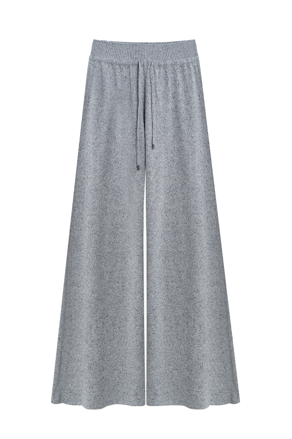 Knitted melange trousers made of soft wool with the addition of silk and viscose. Model of a straight silhouette with a wide belt with a drawstring. Can be complemented with a vest made of the same yarn.