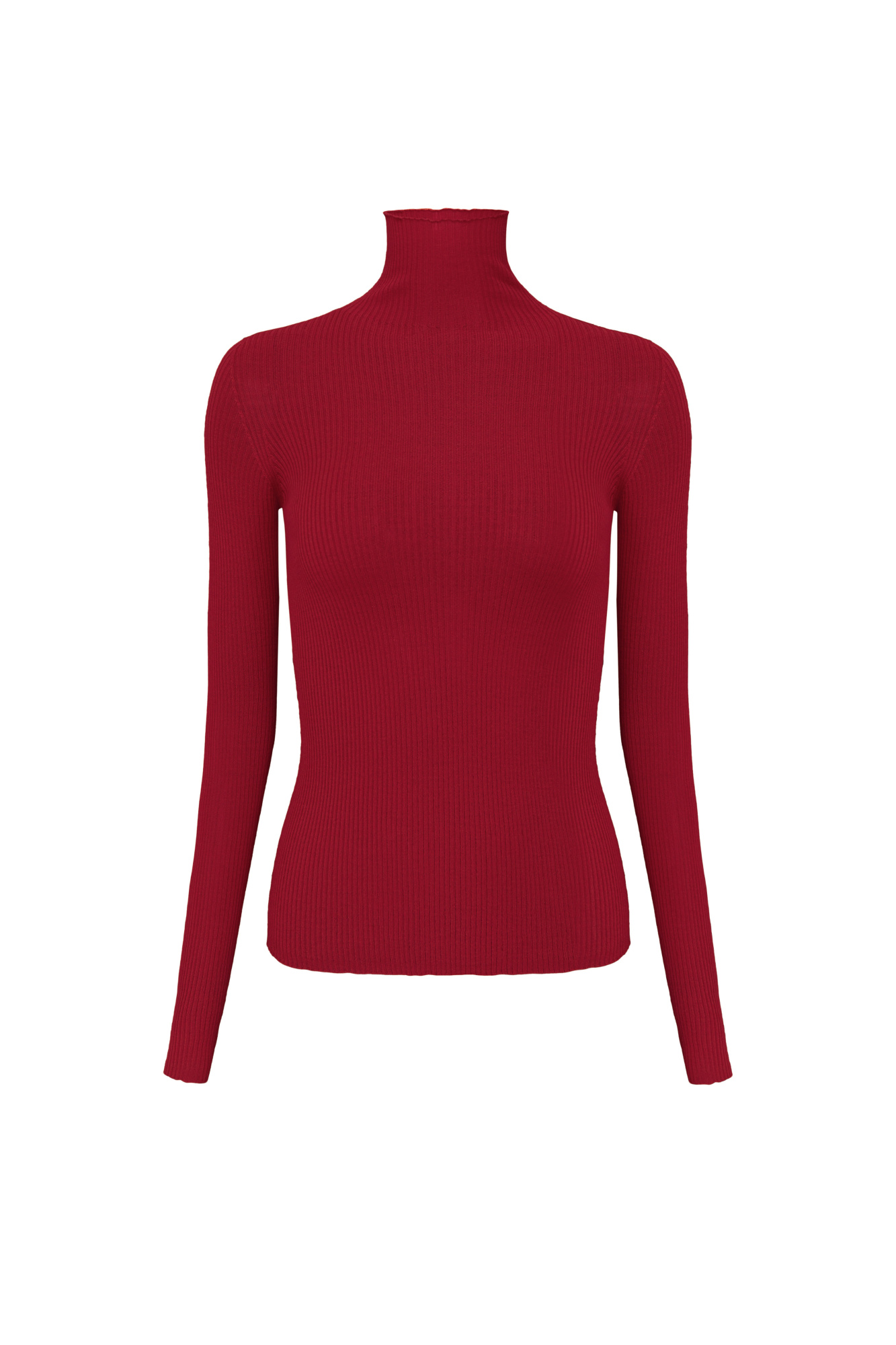 Seamless knitted turtleneck made of extrafine merino wool. The model has a fitted silhouette, long sleeves and a high stand-up collar.