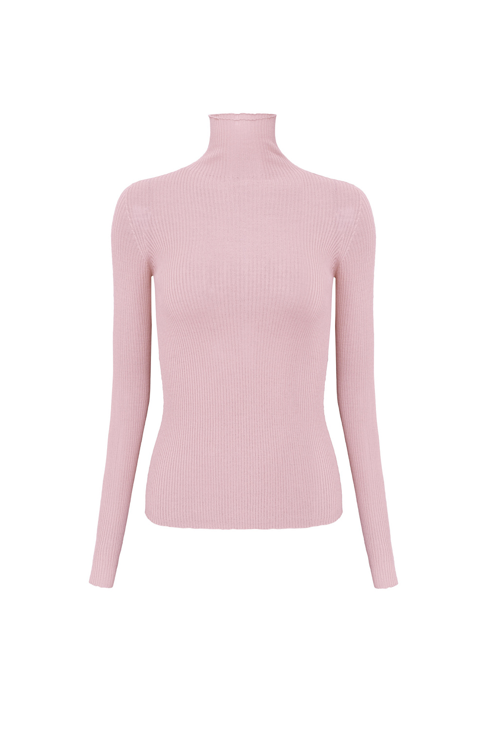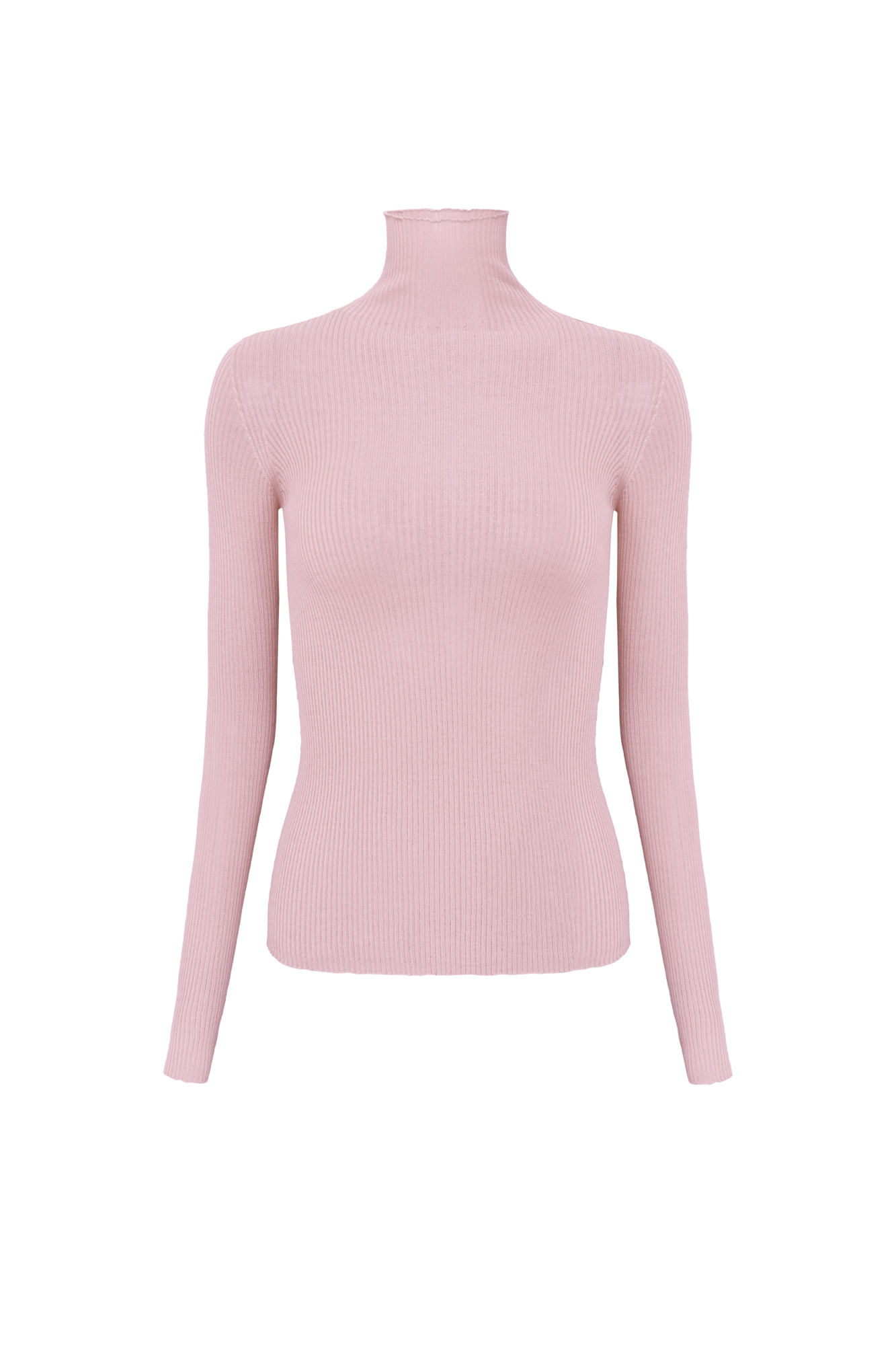 Semi-sheer seamless turtleneck in extrafine merino wool.