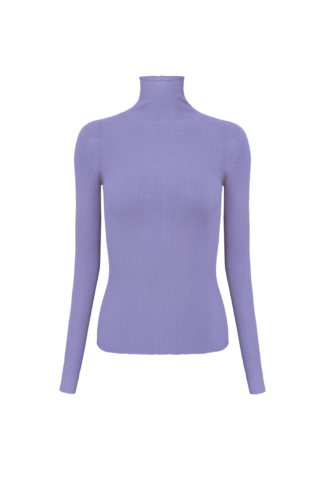 Semi-sheer seamless turtleneck in extrafine merino wool.
