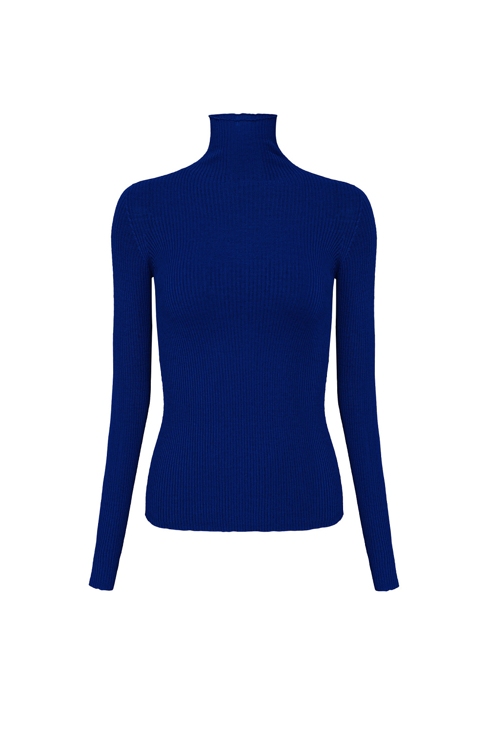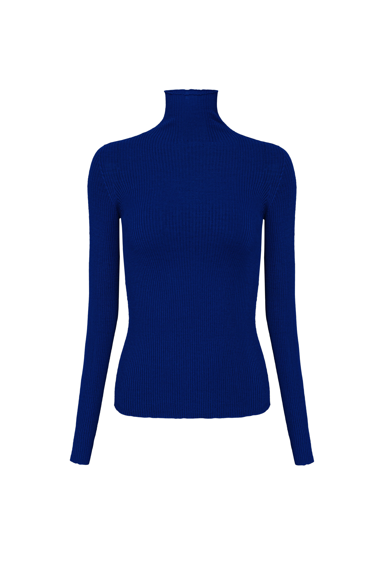 Semi-sheer seamless turtleneck in extrafine merino wool.