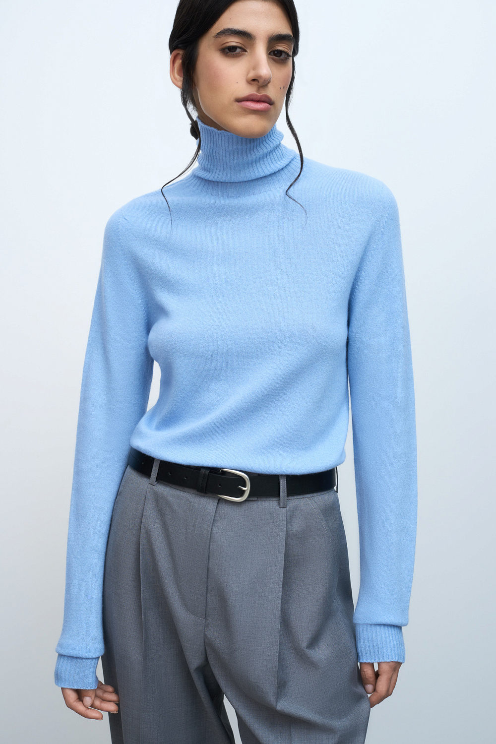 Cashmere and wool turtleneck jumper. Fitted silhouette, ribbed edges.