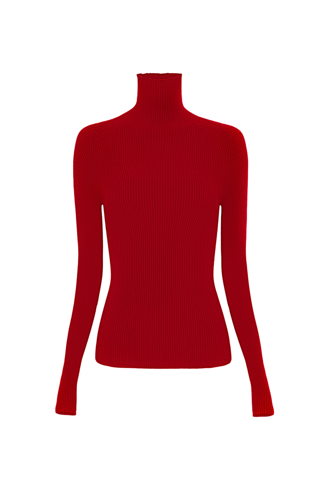Fitted ribbed knit turtleneck with raglan sleeves.