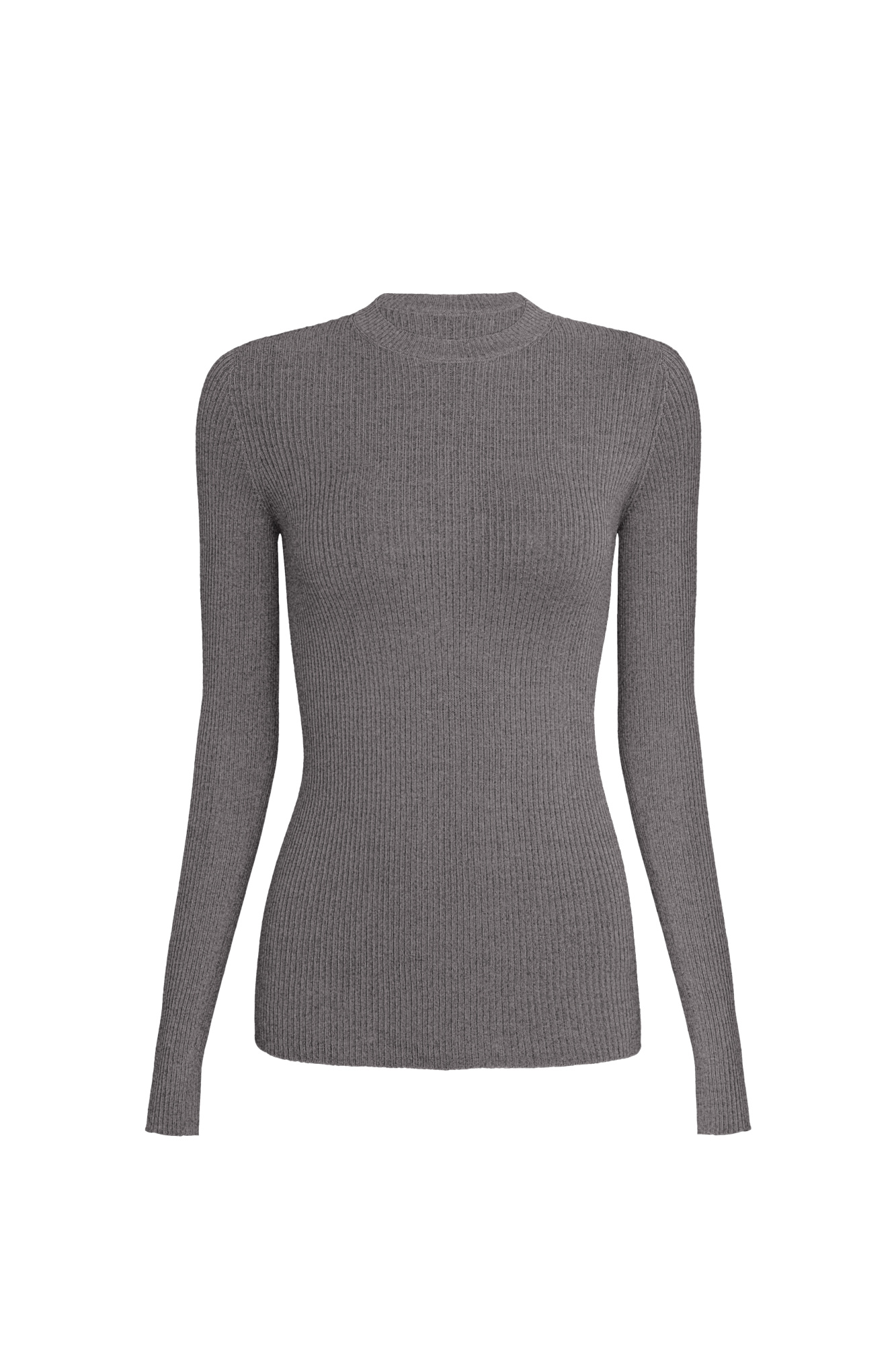 Fitted ribbed wool blend turtleneck with raglan sleeves.