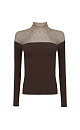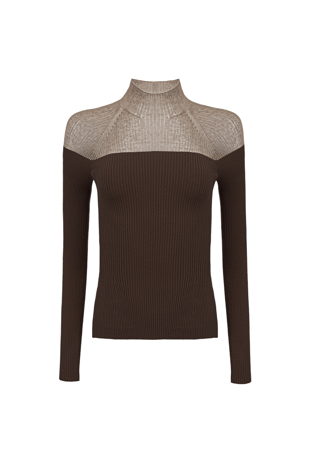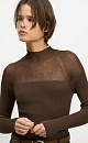 Knitted turtleneck made of fine viscose. Features semi-sheer top and thicker bottom.