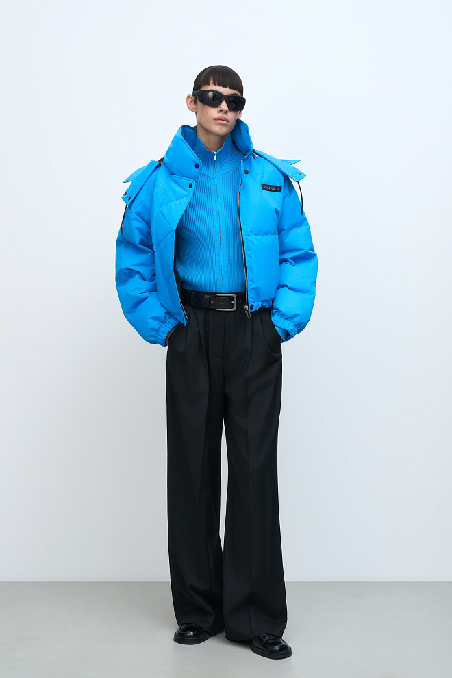 Voluminous down jacket with hood