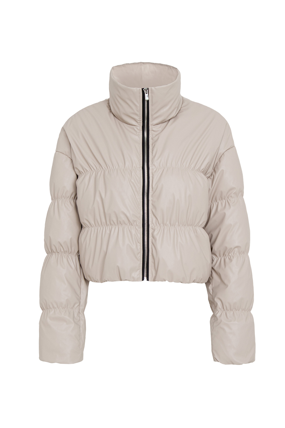 Short quilted down jacket. Loose fit model with stand-up collar and zip fastening.