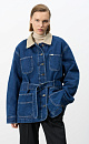 100% cotton denim jacket with corduroy collar. The model has a loose silhouette with dropped shoulders, patch pockets and a belt. Button closure. The product is lined.