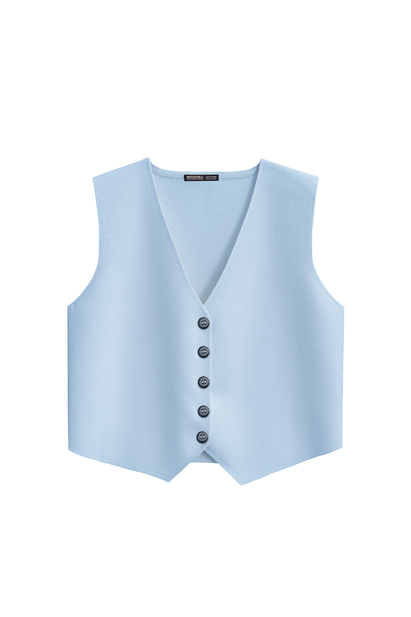 Knitted viscose vest. Straight fit model with V-neck and button closure.