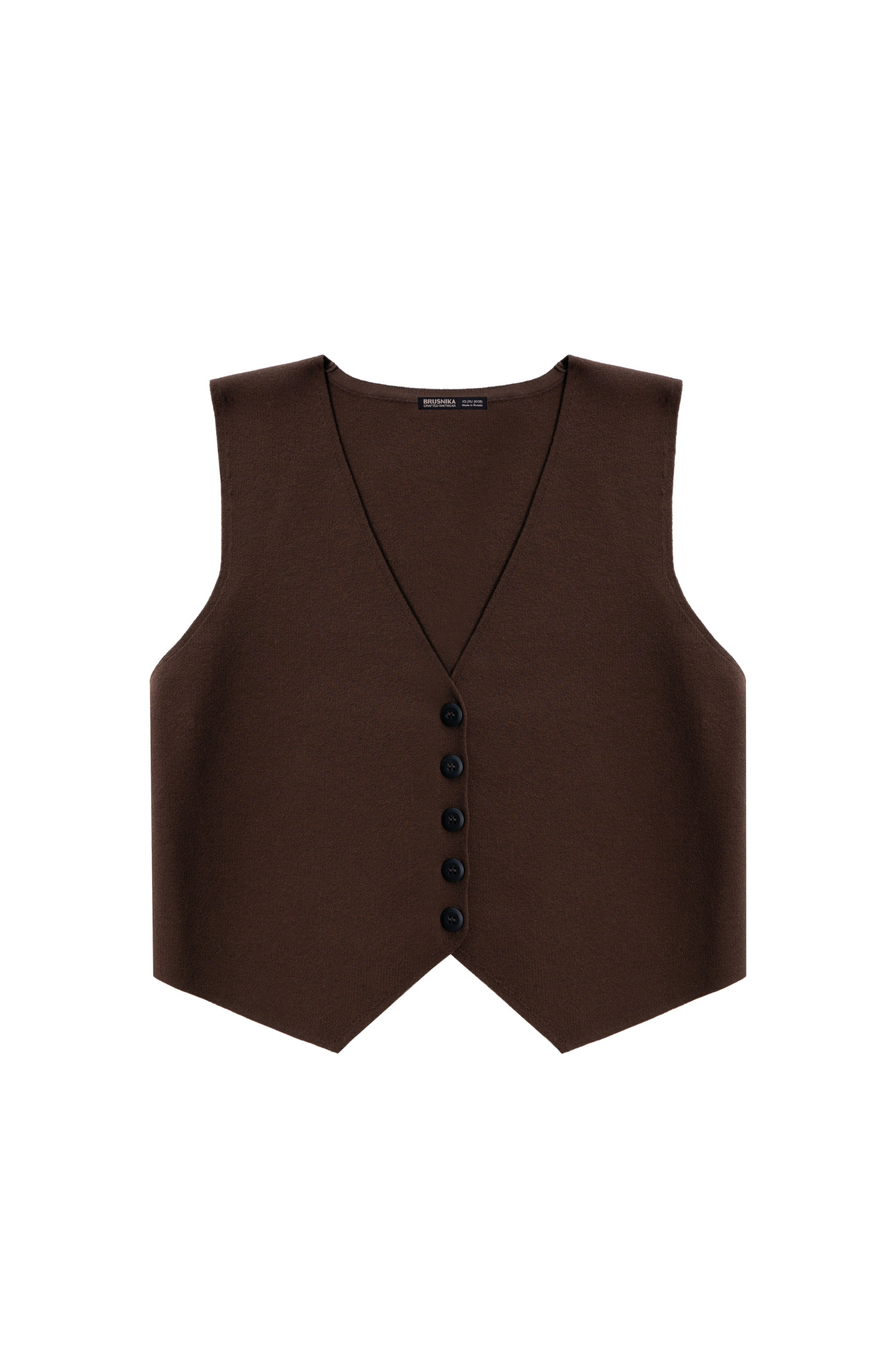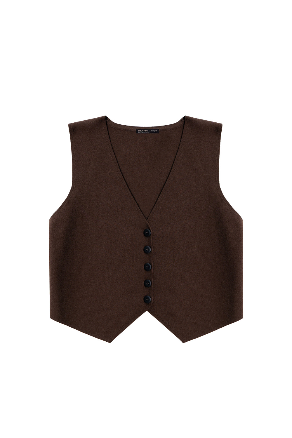Knitted viscose vest. Straight fit model with V-neck and button closure.