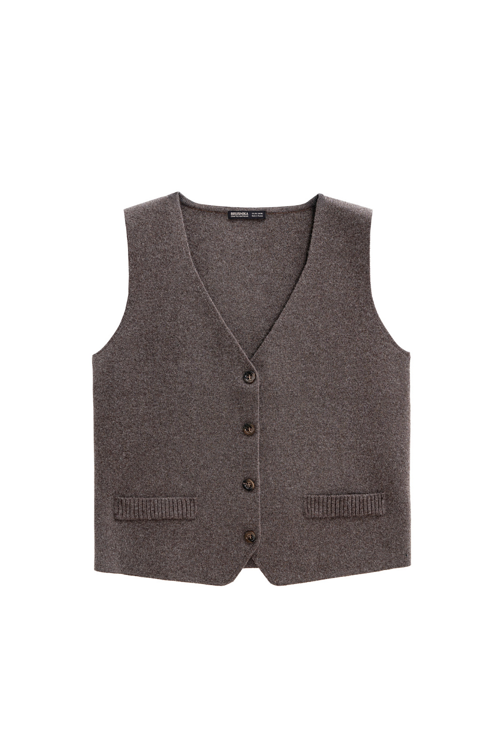 Knitted vest made of wool and cashmere blend. Straight fit model with V-neck and button closure. Imitation pockets. No lining.