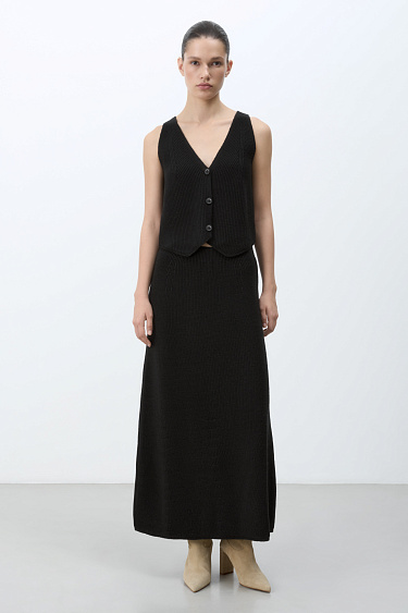 Ribbed knit vest made of wool and cashmere. Fitted model with V-neck and American armhole. Button closure.