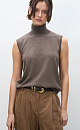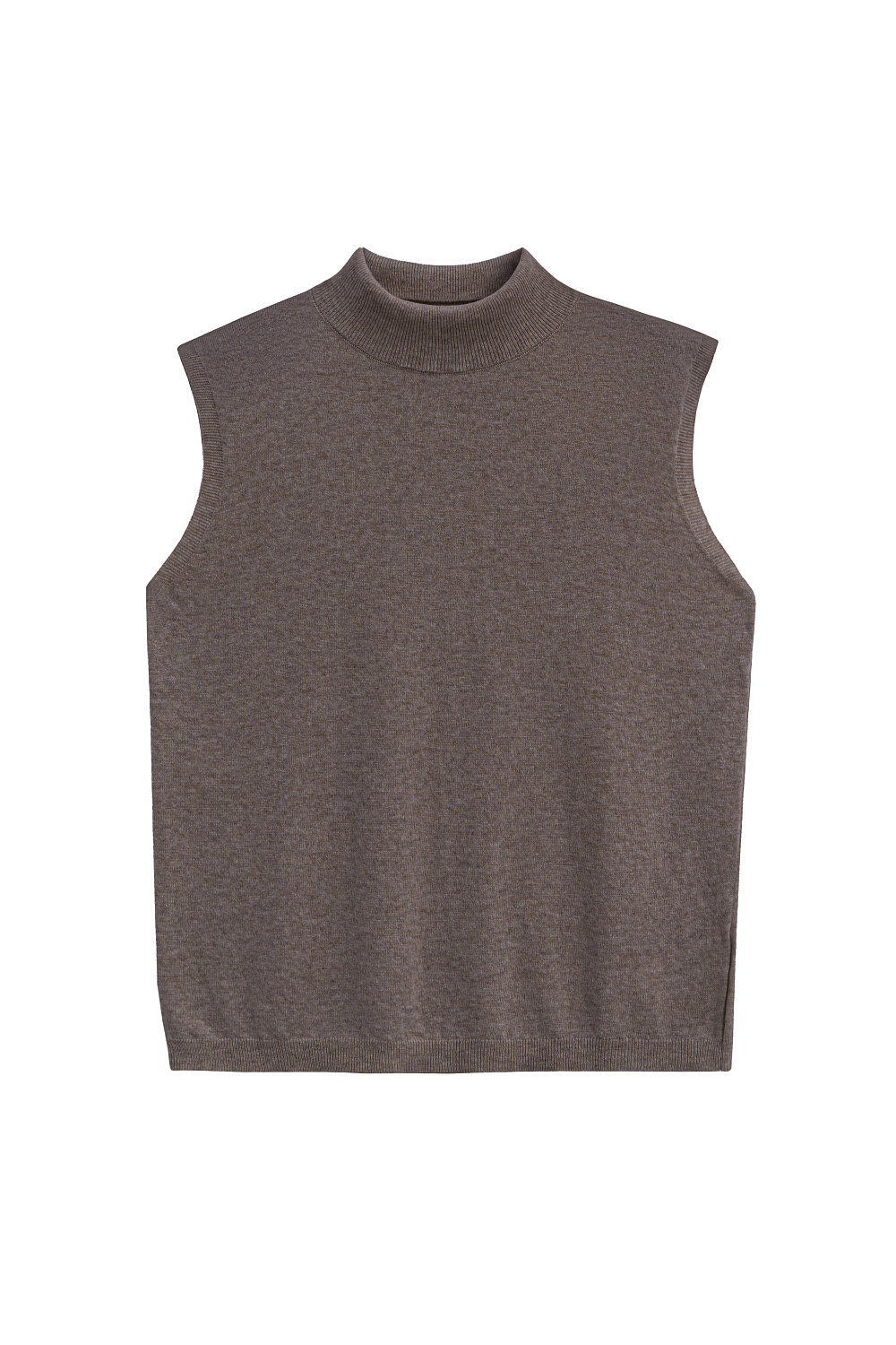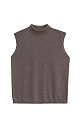 Knitted vest made of cashmere and wool. Sleeveless model with a stand-up collar made of thin rib.