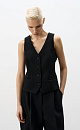 Classic vest made of polyviscose. The model has a fitted silhouette with imitation pockets and a v-neck. Button closure.