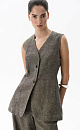 Long vest made of 100% linen. The model has a fitted silhouette, with a V-neck, vertical darts, a belt on the back and slits on the sides. The product is without lining.