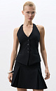 Vest made of polyviscose with an open back and halter neckline. The model has a fitted silhouette with a deep armhole, V-neck and welt pockets. Button closure.