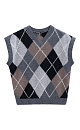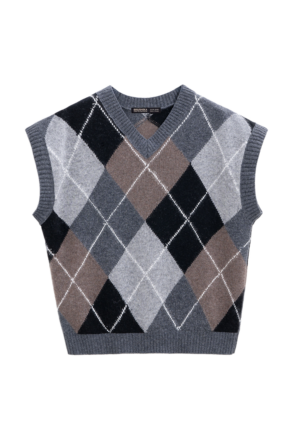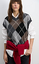 Knitted cashmere vest with argyle pattern. A loose, sleeveless silhouette with a shallow V-neck. The edges of the product are ribbed.