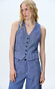 Linen vest. Features straight silhouette with V-neck and false welt pockets. Button closure. You can complete the look with jeans in the same style.