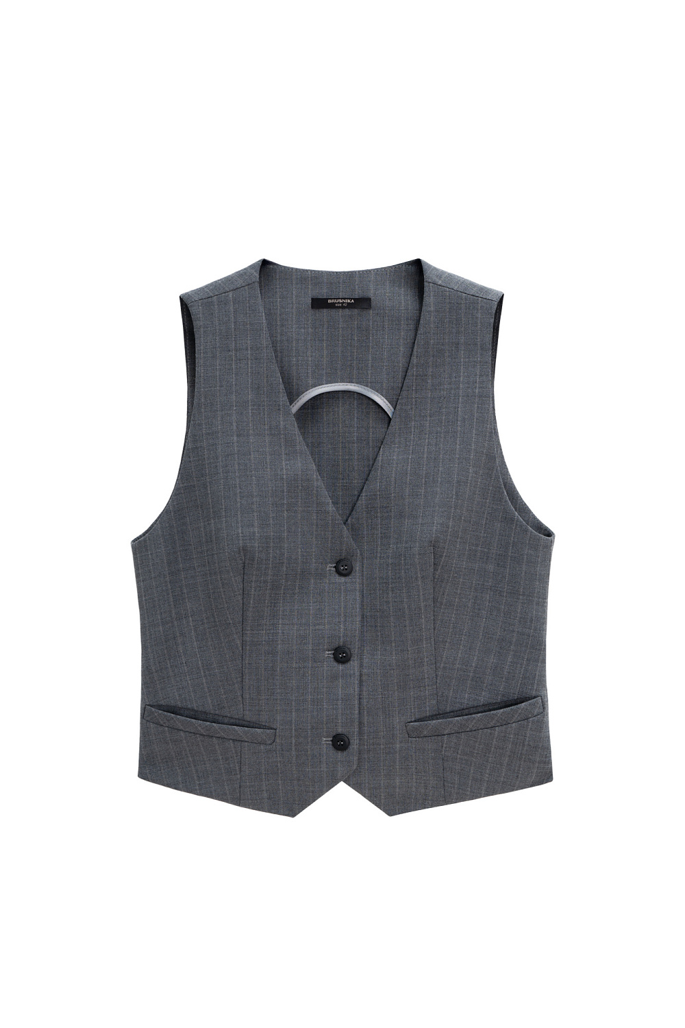 Classic wool vest. Straight cut model with imitation pockets and V-neck. Three button closure. The product is unlined.