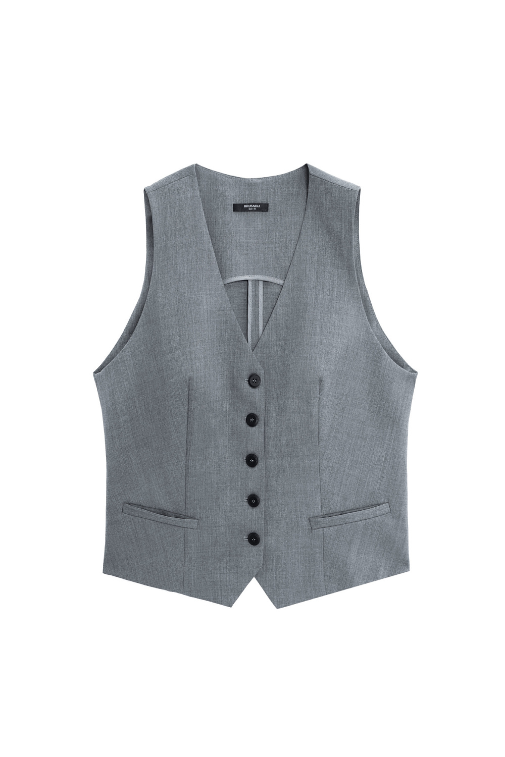Classic vest with imitation pockets and v-neck. Button closure. No lining.