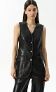 Classic vest made of soft eco-leather. The model has a straight cut, with a V-neck and imitation pockets with flaps. The product is lined. Button closure.