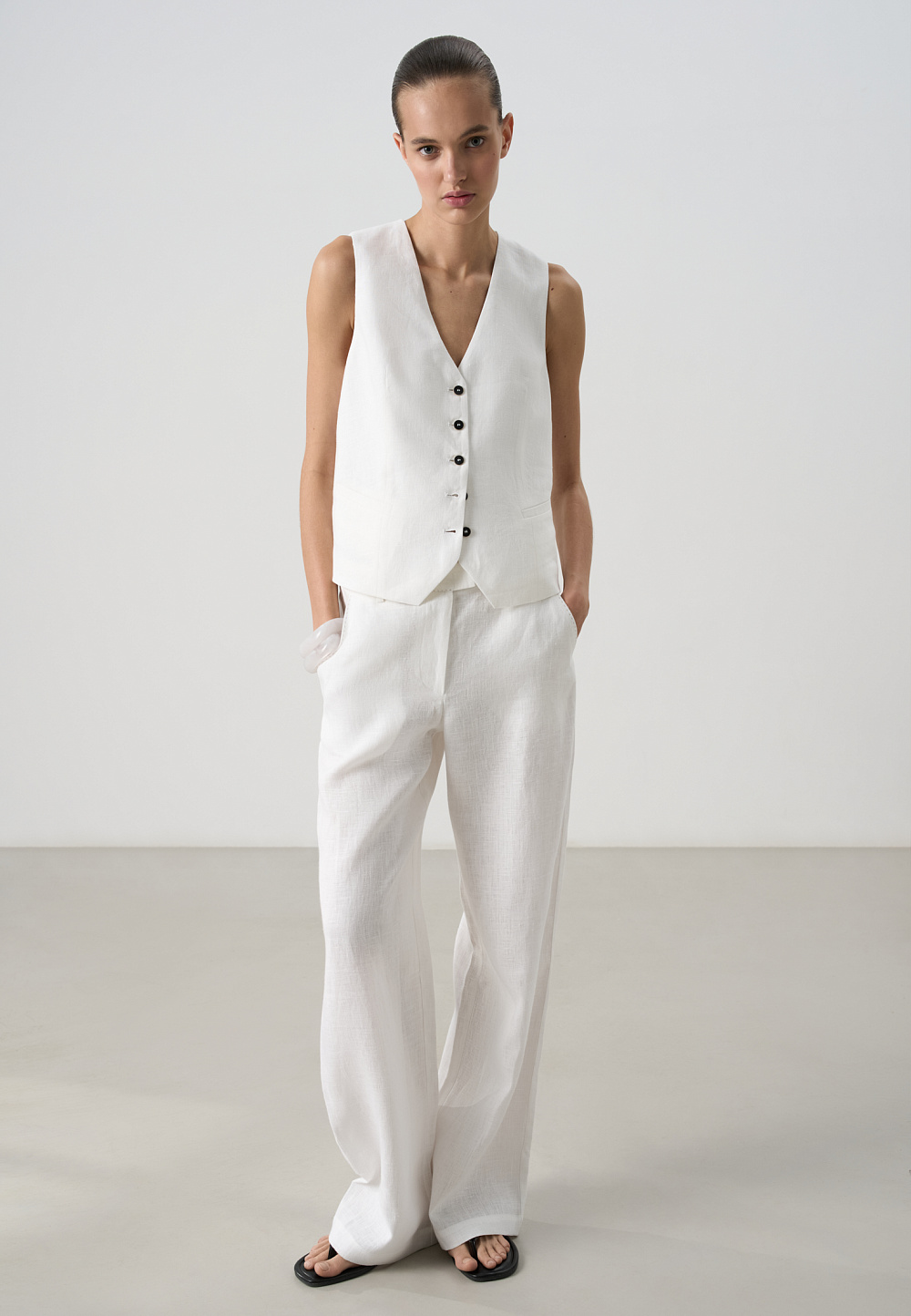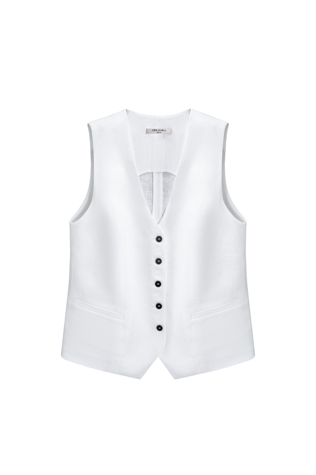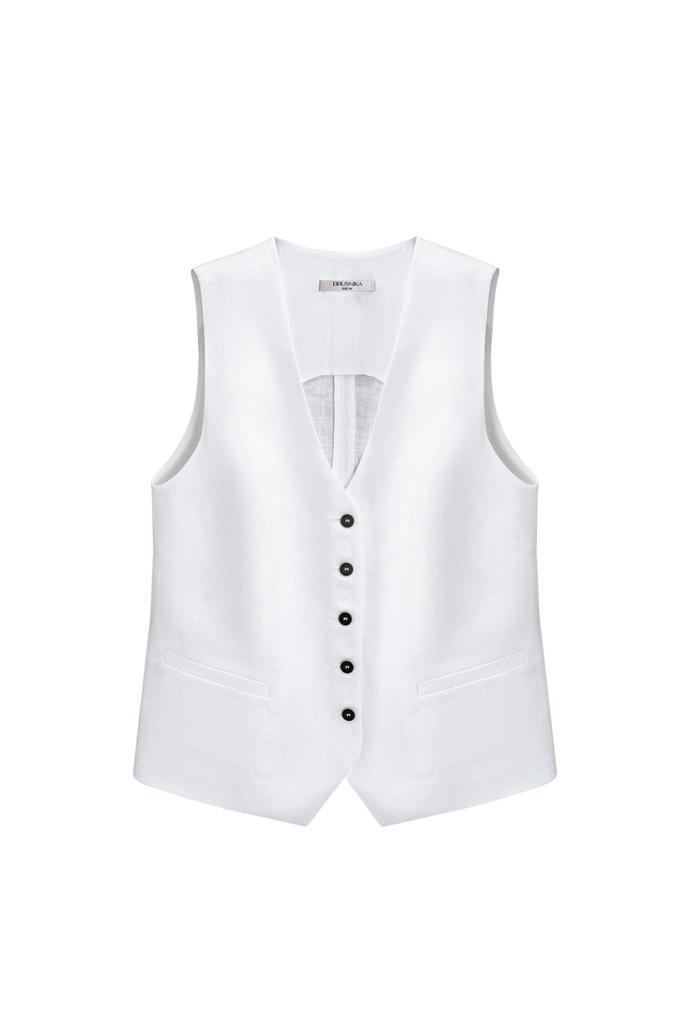 Classic vest made of 100% linen. Straight fit model with V-neck, pockets and button closure.