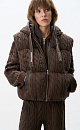 Quilted down vest with a knitted top made of voluminous braids of soft wool. Straight cut model with a hood and two pockets. The bottom of the product is made with elastic. Lined.