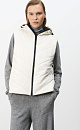Oversized hooded vest with down padding. Snap button closure on the sides and a zipper.