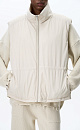 Down vest with adjustable side elastics at the waist. Relaxed silhouette with a stand-up collar and zip fastening.