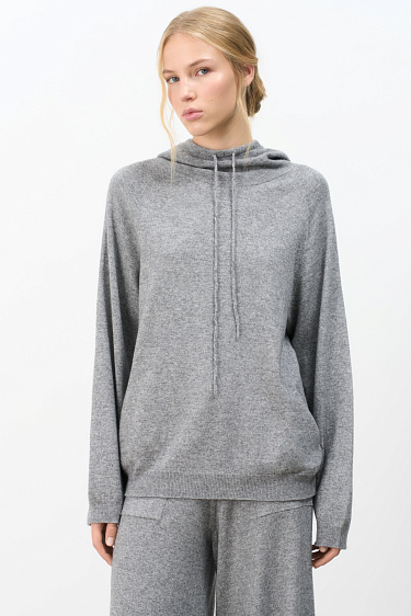 Quilted down vest with a knitted top made of voluminous braids of soft wool. Straight cut model with a hood and two pockets. The bottom of the product is made with elastic. Lined.