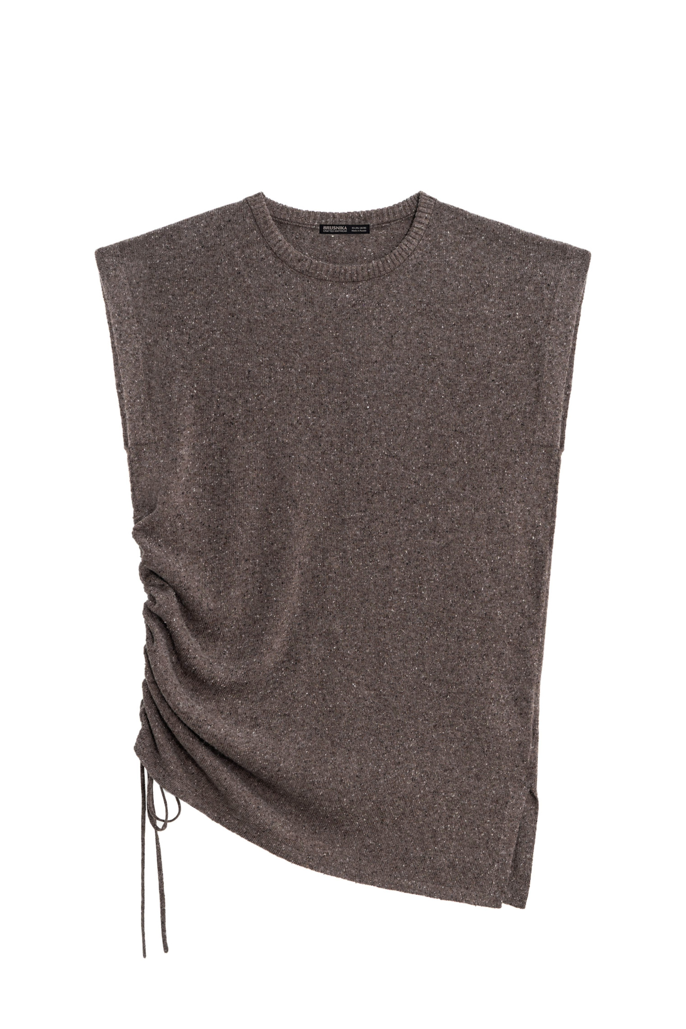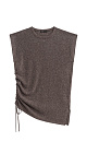 Knitted melange vest made of soft wool with the addition of silk and viscose. Sleeveless, straight silhouette, round neckline, drawstring and side slit. Can be paired with trousers made from the same yarn.
