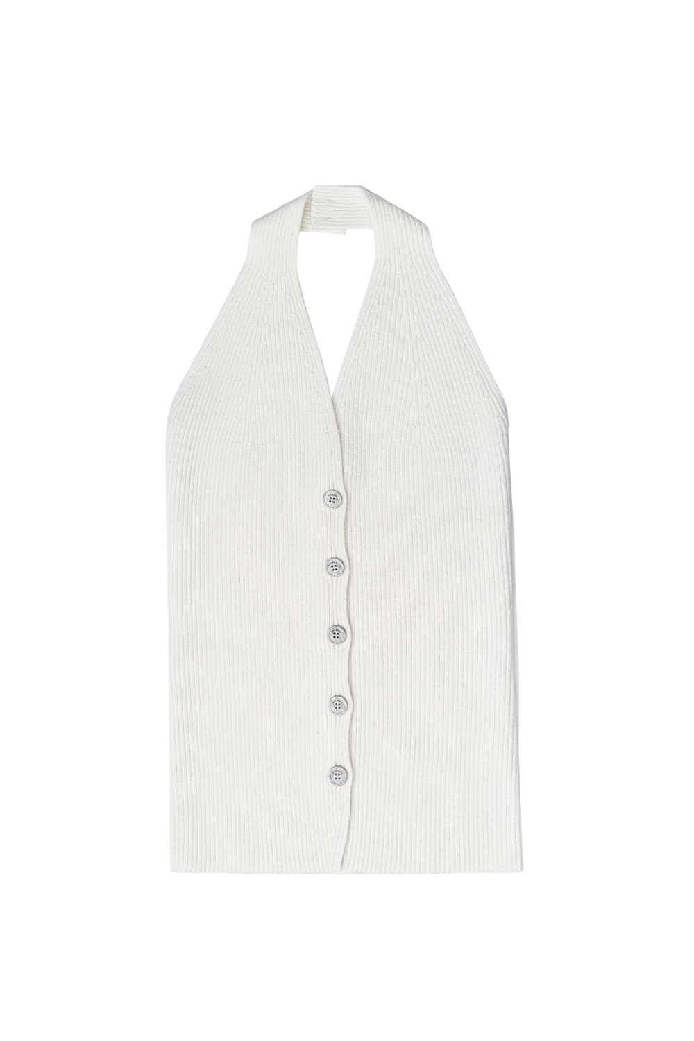 Ribbed knit vest made of wool and cashmere. Fitted model with V-neck and American armhole. Button closure.