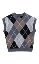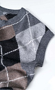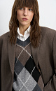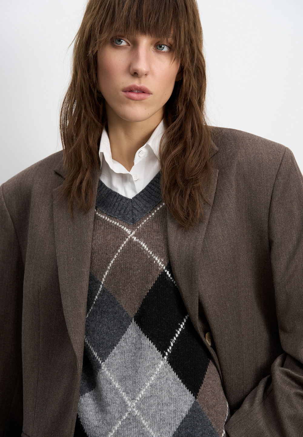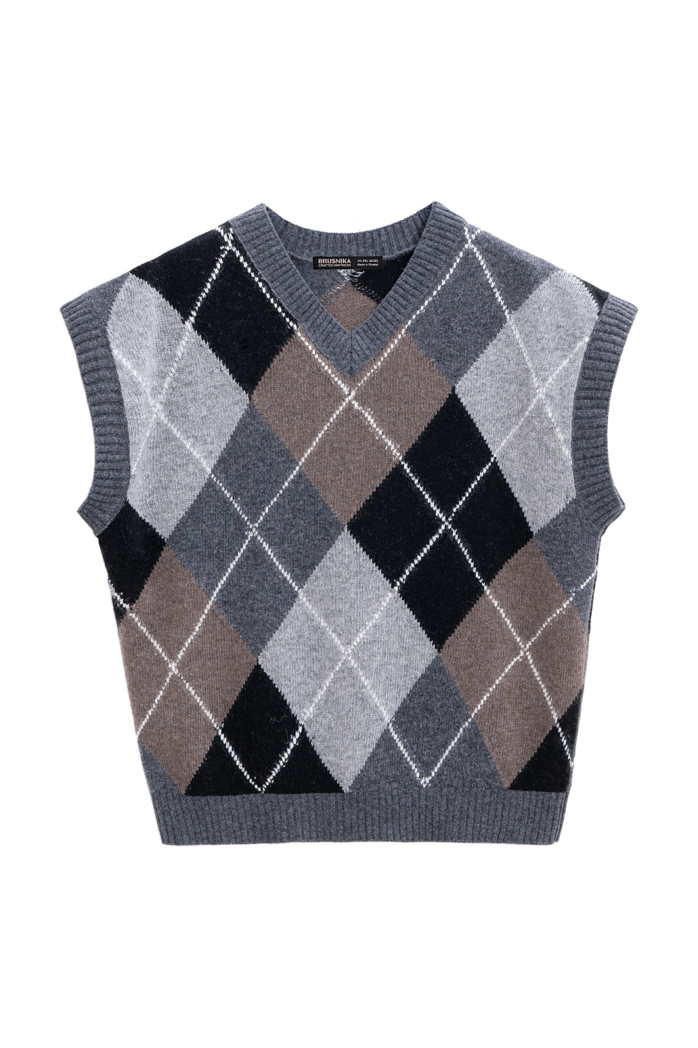 Knitted cashmere vest with argyle pattern. A loose, sleeveless silhouette with a shallow round neckline. The edges of the product are ribbed.